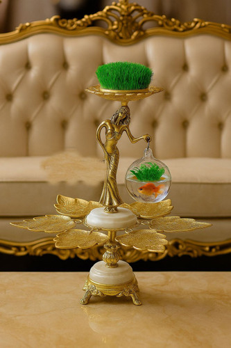سرویس پذیرایی برنجی پایه سنگی مناسب برای هفت سین در دو رنگ