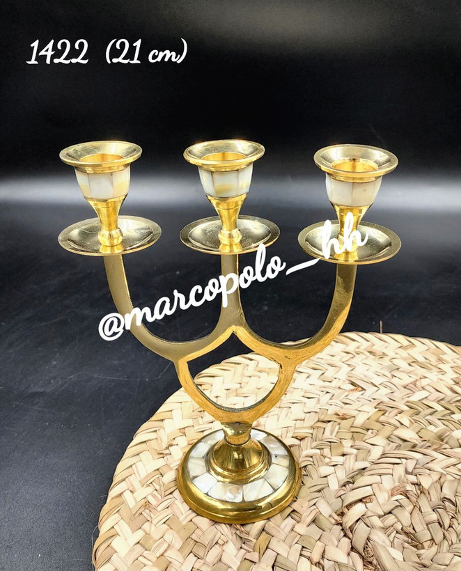 این جاشمعی سه شعله برنجی تکی با طراحی صدفکاری، علاوه بر زیبایی ظاهری، کاربری عالی برای روشنایی و تزئین میز و فضاهای داخلی را دارد. ساخته شده از برنج مقاوم و با طراحی منحصربفرد.