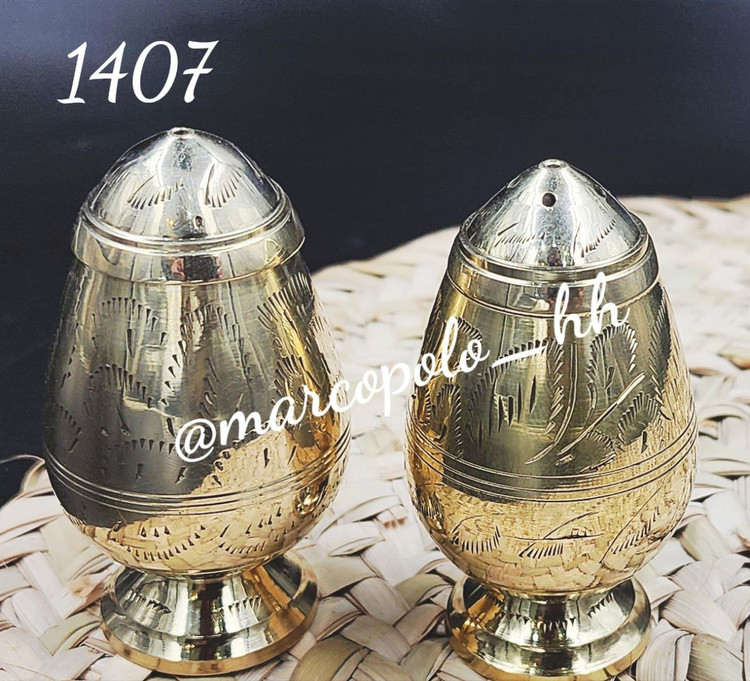 ست دو عددی نمکپاش و فلفل پاش قلم دست برنجی هندی