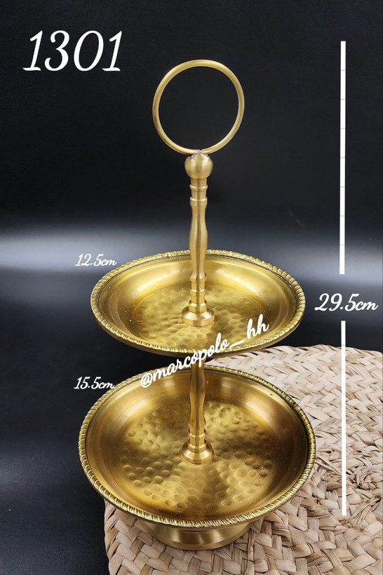 شیرینی خوری دو طبقه آنتیک برنجی هندی قابل استفاده