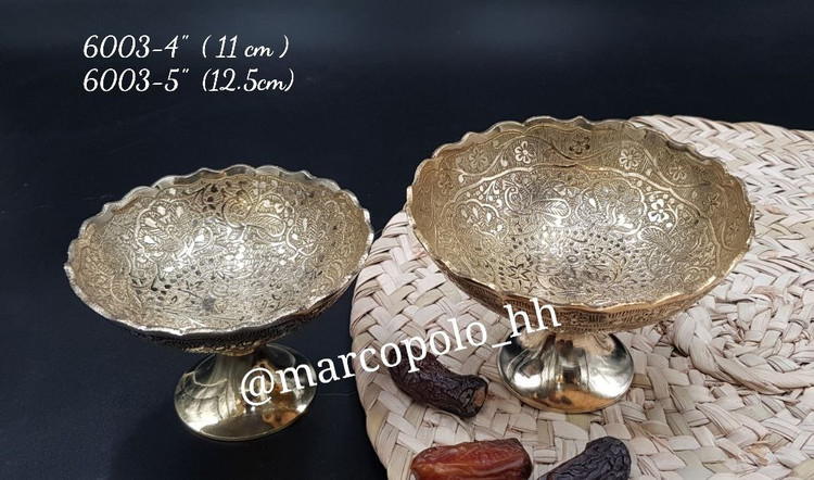 پیاله آجیل خوری پایه دار طرح دوطوطی برنجی هندی در دو سایز