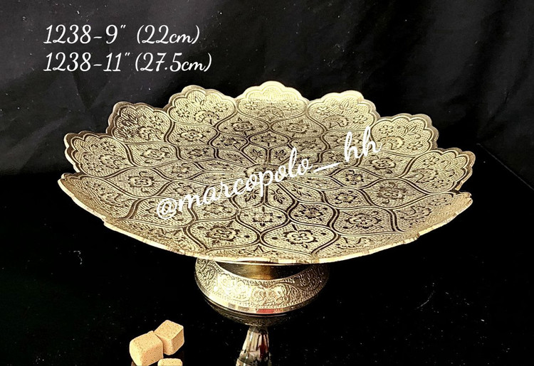 این شیرینی خوری برنجی هندی با طراحی سنتی و در دو سایز، مناسب برای سرو شیرینی، تنقلات و تزئین میز شما با جلوهای خاص و لوکس است.