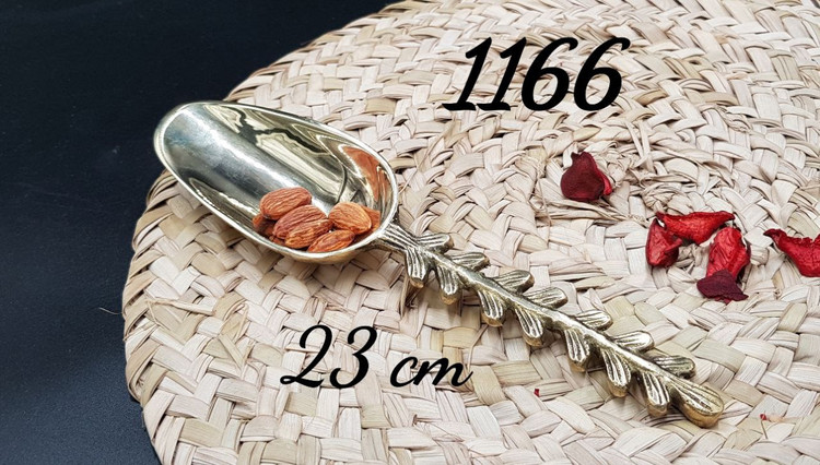 قاشق آجیل خوری برنجی هندی با طراحی برگ، برای سرو تنقلات و آجیل مناسب است و به عنوان وسیلهای کاربردی و دکوری بر روی میز شما قرار میگیرد.