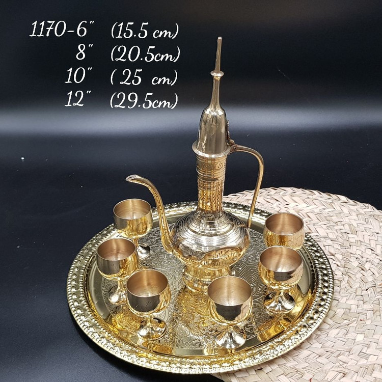 این ست دکوری برنجی هند شامل 6 جام، یک آفتابه و یک سینی با طراحی سنتی و زیبا است که در چهار سایز مختلف عرضه میشود. این مجموعه مناسب برای تزیین فضاهای مختلف منزل، دفتر یا به عنوان هدیهای خاص است. ساخت از برنج با کیفیت، دوام بالا و ظاهر زیبا دارد که به فضاهای شما ارزش و جذابیت میبخشد.