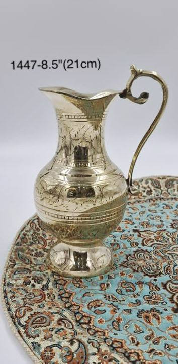 این پارچ برنجی هندی دستساز با طراحی ارگونومیک و پایه محکم، ابزاری کاربردی برای سرو مایعات در منزل و مهمانیها است. ساخت با کیفیت بالا و ظاهر زیبا.