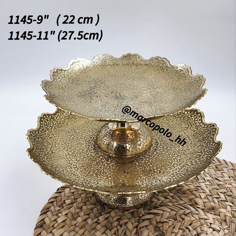 - شیرینی خوری برنجی هندی با **طرح طاووس** و ساختار **لب قلعه**، در دو سایز کوچک و بزرگ، مناسب برای **پذیرایی VIP** و دکوراسیون سنتی. ساخته شده از برنج مرغوب با نقوش هندی اصیل.
