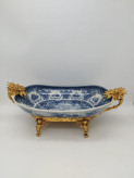 میوه خوری ویولت میوه خوری ویولت تنها یک ظرف ساده برای پذیرایی نیست، بلکه یک عنصر تزیینی زیبا در دکوراسیون منزل شماست. این محصول از ترکیب سرامیک و برنز ساخته شده که هر دو ماده هم به دوام و هم به زیبایی ظرف کمک میکنند. سرامیک استفادهشده، سطحی صاف و براق دارد که به راحتی تمیز میشود و جلوهای شیک و جذاب به میز پذیرایی شما میبخشد. رنگ این سرامیک آبی است اما نه یک آبی ساده! بلکه طرح های بی نظیری را از طبیعت و کاخ های سلطنتی در خود جای داده است که اصطلاحا به آن طرح های انگلیسی گفته می شود و از طرفی، پایههای برنزی این ظرف حس کلاسیک و لوکسی به آن تزریق کرده است که هر فضایی را دلنشینتر میکند. ابعاد و کاربرد میوه خوری ویولت ارتفاع 17 سانتیمتری این ظرف نه خیلی کوتاه است که ساده به نظر بیاید و نه آنقدر بلند که در دسترس نباشد. این ارتفاع به شما اجازه میدهد تا به راحتی از داخل آن میوه بردارید و همزمان میز پذیراییتان مرتب و زیبا باقی بماند. طول 51 سانتیمتری و عرض 25.5 سانتیمتری آن نشاندهنده فضایی مناسب برای انواع میوههاست؛ از میوههای کوچکتر مثل انگور و سیب تا میوههای بزرگتر مثل پرتقال و انار. شما میتوانید به راحتی یک میز پذیرایی کامل و زیبا داشته باشید. وزن 3.5 کیلوگرمی این محصول نشان از استحکام و دوام بالای آن دارد، به این معنا که ظرفی محکم و بادوام است و میتوانید بدون نگرانی از آن در مهمانیهای مختلف استفاده کنید. علاوه بر این، طراحی بینظیر این ظرف به گونهای است که حتی زمانی که از آن استفاده نمیکنید، میتواند به عنوان یک تزیین شیک روی میز یا کنسول شما قرار بگیرد. مشخصات اصلی میوه خوری ویولت جنس: ترکیب سرامیک و برنز ارتفاع: 17 سانتیمتر طول: 51 سانتیمتر عرض: 25.5 سانتیمتر وزن: 3.5 کیلوگرم کاربرد: مناسب برای پذیرایی و تزیین ویژگیها: طراحی شیک و لوکس، مقاوم و بادوام راهنمای نگهداری از میوه خوری ویولت برای حفظ زیبایی و دوام میوهخوری ویولت، توصیه میشود آن را در ماشین ظرفشویی نگذارید و با استفاده از یک پارچه نرم و مرطوب تمیز کنید. از مواد شیمیایی قوی برای پاکسازی قسمتهای سرامیکی و برنزی خودداری کنید تا از خط و خش یا تغییر رنگ جلوگیری شود. همچنین بهتر است ظرف را دور از نور مستقیم خورشید نگه دارید تا جلای سرامیک و برنز آن حفظ شود. چرا میوهخوری ویولت را خریداری کنم؟ حال که با مشخصات این ظرف پذیرایی شیک اشنا شدیم قت آن رسیده است که به بحث ارزش خرید آن بپردازیم. اینکه دلیل خرید آن چیست و چرا باید از میان صدها میوه خوری سراغ این محصول بروید. ما در زیر دلایل کافی را برای خرید شما بیان کرده ایم: ترکیبی از هنر و کاربرد: این میوهخوری تنها یک ظرف ساده پذیرایی نیست، بلکه یک اثر هنری است. ترکیب زیبای سرامیک و برنز، به آن ظاهری لوکس و خاص بخشیده است. اندازه مناسب: با ارتفاع 17 سانتیمتر، طول 51 سانتیمتر و عرض 25.5 سانتیمتر، این میوهخوری فضایی کافی برای انواع میوهها فراهم میکند. جنس باکیفیت: سرامیک و برنز دو ماده بسیار مقاوم و باکیفیت هستند که به این میوهخوری طول عمر زیادی میبخشند. وزن مناسب: با وزن 3.5 کیلوگرم، میوهخوری ویولت هم محکم است و هم به راحتی جابهجا میشود. قیمت مناسب: طراحی خاص این میوهخوری، آن را از سایر محصولات مشابه متمایز کرده است. بنابراین میتوان گفت که با توجه به زیبایی منحصر به فرد و کاربرد بی نظیری که دارد از قیمت مناسبی برخوردار است