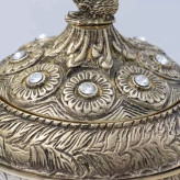 شکلات خوری پارمیدا شکلات خوری پارمیدا یکی از محصولات بسیار پرطرفدار ما است که طراحی آن شبیه به چراغ جادو است. این شکلات خوری به صورت درب دار تولید شده و علاوه بر اینکه می توانید از آن به عنوان ظرفی برای ریختن انواع خوراکی و شکلات استفاده نمایید، کاربرد تزیینی نیز دارد. در ادامه با ویژگی های این محصول و مزایا و کاربردهای آن بیشتر آشنا خواهیم شد. ویژگی های شکلات خوری پارمیدا همانطور که در مقدمه اشاره کرده بودیم این محصول دارای درب و دسته است. در طراحی شکلات خوری پارمیدا، دسته ها نقش اصلی را برای زیبایی آن ایفا می کنند. دسته های این محصول به گونه ای طراحی شده که می تواند شکلی شبیه به غول چراغ جادو را نشان دهد. همچنین شکل و شمایلی که برای دسته انتخاب شده مانند گیاهیی جادویی است. البته اگرچه این چراغ جادو غول ندارد؛ اما می تواند با طورشگفت انگیزی در زیباتر شدن هرچه بیشتر میز پذیرایی شما موثر باشد. مورد بعدی که در طراحی آن خودنمایی می کند، نگین های کار شده روی درب و قو سر به گریبانی است که روی درب کار شده است. در این محصول شما می توانید خلاقیت و ذوق هنری طراح را به خوبی لمس کنید. در خصوص ابعاد این ظرف زیبا نیز لازم است بدانید ارتفاع آن 38 سانت، عرض 37 سانت و وزن آن 3100 گرم می باشد. مزایای خرید شکلات خوری پارمیدا با داشتن شکلات خوری پارمیدا می توانید دو نشان را با یک تیر بزنید. به این صورت که هم به عنوان محصولی تزیینی از آن استفاده نمایید و هم به عنوان شکلات خوری روی میز پذیرایی تان از آن بهره ببرید. از آنجایی که این محصول از برنز ساخته شده، دیگر نیازی نیست نگران شکستگی و یا هرگونه آسیب در قسمت های مختلف آن باشید. در ادامه روش تمیز کردن ونگهداری را نیز به صورت کامل بررسی خواهیم کرد تا از بابت تغییر رنگ و یا هرگونه آسیب روی بدنه محصول نیز خیال تان راحت باشد. نحوه نگهداری از شکلات خوری پارمیدا این ظرف تماما از برنز ساخته شده و به همین دلیل یک سری نکات در نگهداری از آن وجود دارد که باید رعایت کنید. مورد اول خشک نگاه داشتن ظرف در هر شرایطی است. اگر آن را شستید، حتما خشک نمایید. همچنین از قرار دادن ظرف در محیط های دارای رطوبت خودداری نمایید، زیرا رطوبت منجر به اکسید شدن و تغییر رنگ سریع تر آن خواهد شد. مورد بعدی عدم استفاده از موادی مانند جلاسنج روی آن است. برخی به اشتباه تصور می کنند که جلاسنج می تواند منجر به براقیت بیشتر ظرف شود؛ در این مورد باید به شما بگوییم که تصوری اشتباه است و جلاسنج لایه کیلر روی آن را از بین برده و منجر به سیاه شدن و تغییر رنگ آن خواهد شد. نحوه تمیز کردن شکلات خوری پارمیدا برای تمیز کردن شکلات خوری پارمیدا تنها یک دستمال مرطوب کافی است. شما می توانید دستمال مرطوب را به آرامی روی ظرف کشیده و گرد و غبار و آلودگی ها را به راحتی پاک نمایید. از آنجایی که ممکن است در درازمدت آلودگی ها داخل شیارها نفوذ کند پیشنهاد می کنیم در هر بار استفاده روی آن را دستمالی مربوط بکشید تا این اتفاق نیوفتد و آلودگی ها داخل شیارها نفوذ نکند. به علاوه از گذاشتن ظرف داخل ماشین ظرف شویی خودداری نمایید؛ زیرا ماشین ظرف شویی منجر به از بین رفتن لایه کیلر شده و در نتیجه این موضوع منجر به تغییر رنگ آن خواهد شد. برای تمیز کردن ظروف برنجی به هیچ عنوان از مواد اسیدی و همچنین مواد شیمیایی نیز نباید استفاده نمایید؛ زیرا این مواد منجر به تغییر رنگ آن خواهند شد. نکته ای که در مورد تمامی محصولات دارای لایه کیلر باید بدانید این موضوع است که تمامی محصولات دارای لایه کیلر یک لایه محافظ دارند که از اکسید شدن و تغییر رنگ آن تا حد زیادی جلوگیری خواهد کرد. به همین دلیل توصیه می شود تا جای ممکن از آسیب دیدن این لایه جلوگیری کنید تا رنگ و کیفیت محصول برای مدت زمان طولانی تری حفظ شود. خرید شکلات خوری پارمیدا برای خرید تک این محصول میتوانید از طریق سایت اقدام نمایید و برای خرید عمده با کلیک روی گزینه تماس با ما در وبسایت و استعلام قیمت سفارش خو