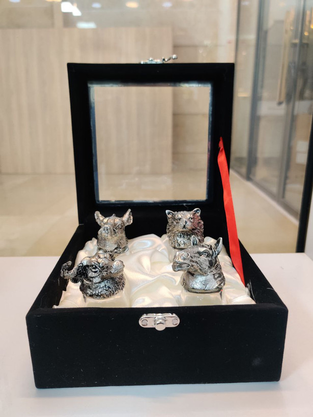 این ست خاص شامل ۴ لیوان شربتخوری با طراحی سر حیوانات متفاوت است، از جنس برنج با آبکاری نقرهای یا رنگ نقرهای براق. سر حیوانات مثل ببر، فیل، گرگ و آهو با جزئیات دقیق و منحصربهفرد حکاکی شدهاند. این محصول ترکیبی از هنر کلاسیک و جلوه مدرن است؛ مناسب برای دکوراسیون شیک، پذیرایی خاص یا هدیهای هنری و متفاوت.