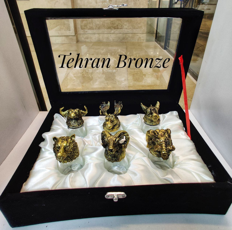 این ست شربتخوری خاص شامل ۶ لیوان با طراحی منحصربهفرد سر حیوانات است، هرکدام از جنس برنج با پرداختی دقیق و هنرمندانه. سر حیوانات مانند شیر، فیل، آهو، اسب و دیگر طرحها با جزئیات بالا حکاکی شدهاند تا علاوه بر کاربرد، جنبه تزئینی و دکوراتیو نیز داشته باشند. این محصول ترکیبی از هنر، زیبایی و کاربرد است؛ مناسب پذیرایی شیک، دکور خاص یا هدیهای فاخر برای علاقهمندان به صنایعدستی برنزی.