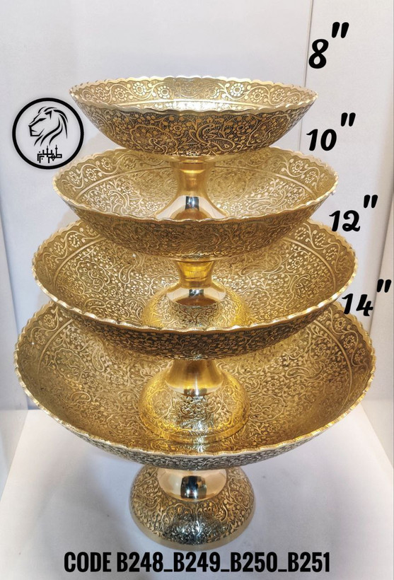 این ست شامل چهار کاسه میوهخوری پایهدار با طراحی دو طبقه (دوبل) و نقوش برجستهی گل روی بدنه است که با دقت از جنس برنز اعلا ساخته شدهاند.