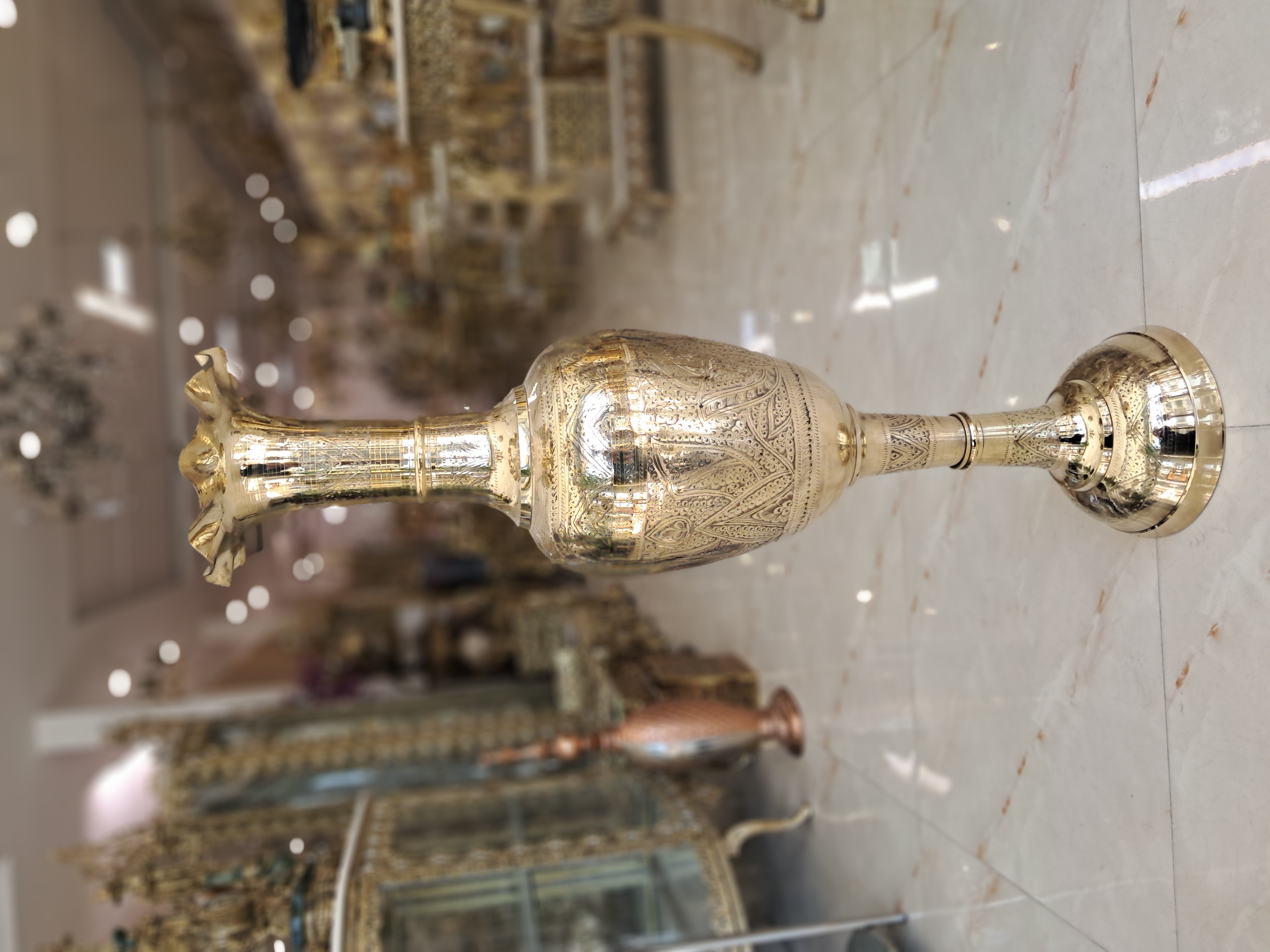 گلدان کشمیر برنجی با طراحی لبهلال طلایی، ترکیبی هنرمندانه از سبک سنتی و جلوهای مجلل است. جنس این محصول از فلز برنجی با کیفیت ساخته شده و بخش لبهلال آن با رنگ طلایی، جلوهای سلطنتی و خاص به محصول بخشیده است. مناسب برای دکوراسیون داخلی کلاسیک یا مدرن، ویترینهای تزئینی، و همچنین هدیه دادن به افراد با سلیقهی خاص. این گلدان هم به عنوان ظرف گلهای خشک کاربرد دارد و هم به تنهایی جلوهای هنری خلق میکند.