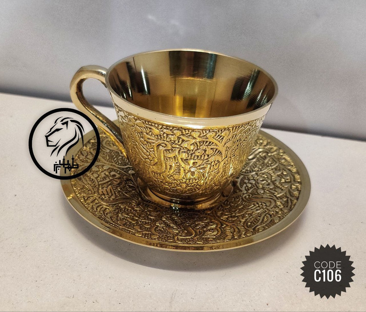 این قهوهخوری طلایی با طراحی طاووس و جنس ضخیم، لوکس و مقاوم ساخته شده است، مناسب برای سرو قهوه در مراسم خاص.