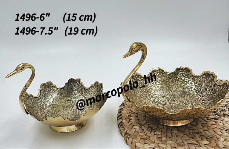 ظرف برنجی هندی طرح قو، مناسب برای آجیل و شکلات، با طراحی لوکس و سنتی، دکوری و هدیه خاص برای منزل و مهمانیها.
