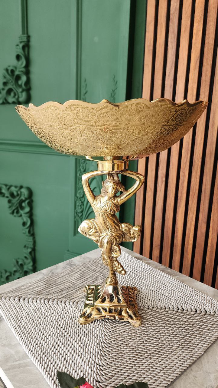 میوه خوری برنجی طرح طاووس پایه فرشته سنگین