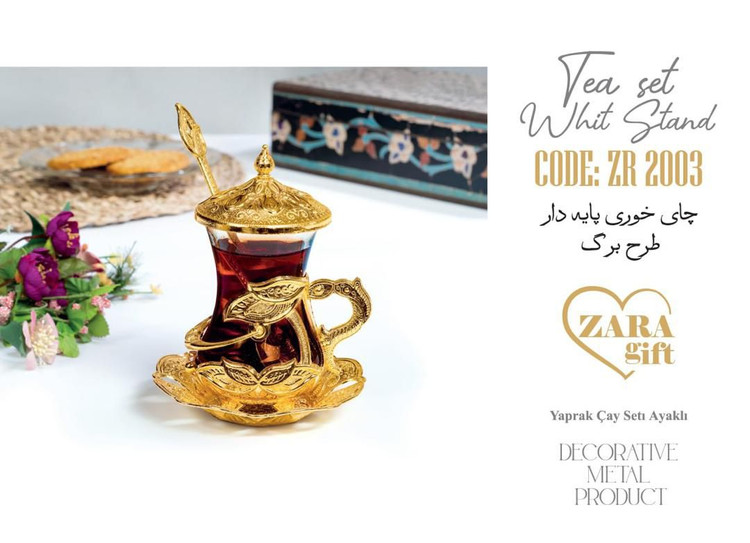 کارتن 12 عددی چایی خوری پایه دار طرح برگ در رنگ بندی متنوع