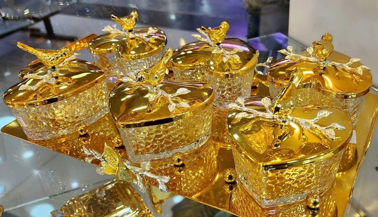 ست ظرف سرو 6تایی طلایی با طراحی منحصر به فرد قلب، بسیار شیک و لوکس، مناسب برای سرو غذا و تزئین میز در مهمانیها و مراسم خاص.