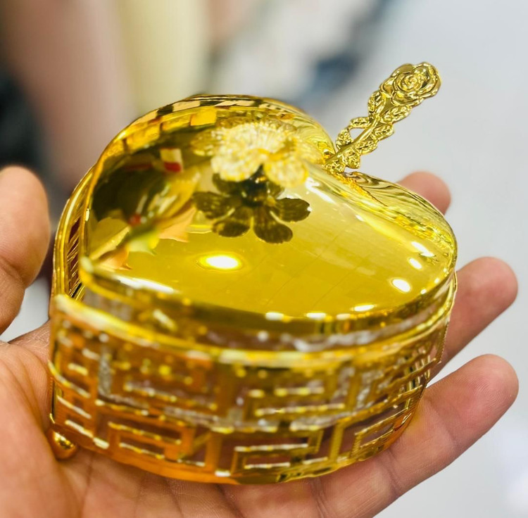 جاجواهری طلایی با طرح قلب، طراحی زیبا و دخترانه که نماد عشق و محبت است. ساخت با کیفیت و مناسب برای هدیه یا استفاده روزمره.