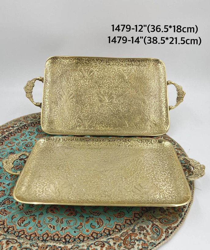 سینی مستطیل تخت طاووسی برنجی در دو سایز مختلف
