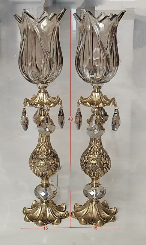 شمعدان کاراکاس جفتی سایز بزرگ همراه لاله