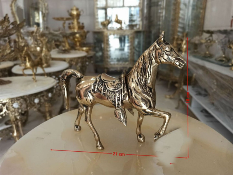 مجسمه اسب زیندار طلایی از جنس برنج، نمادی از شکوه، قدرت و زیبایی است. طراحی دقیق و جزئیات ظریف زین و بدن اسب، آن را به یک اثر هنری دکوراتیو تبدیل کرده که مناسب قرارگیری روی میز، کنسول، شومینه یا ویترینهای لوکس است. رنگ طلایی درخشان آن جلوهای سلطنتی دارد و جنس برنجیاش دوام بالا و حس اصالت را منتقل میکند. این مجسمه انتخابی عالی برای علاقهمندان به دکوراسیون کلاسیک، سنتی یا حتی مدرن با چاشنی تجمل است.