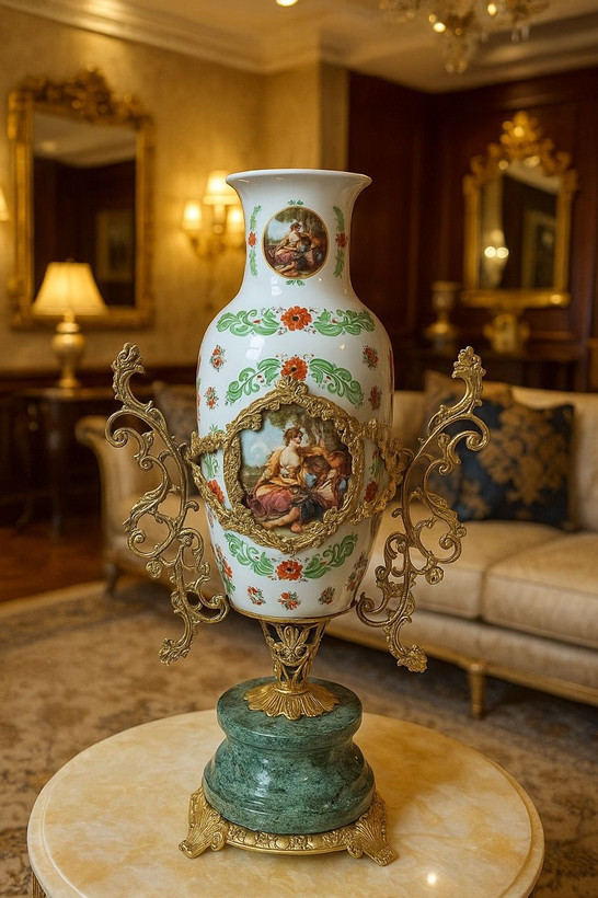 این گلدان رومیزی ترکیبی از چینی با کیفیت بالا و پایهای از سنگ مرمر درجه یک است که با جزئیات برنجی تزئین شده. طراحی آن مناسب دکوراسیونهای کلاسیک و مدرن بوده و جلوهای خاص به میز پذیرایی، کنسول یا میز کنار مبلی میبخشد. پایه سنگی آن علاوه بر زیبایی، ثبات و دوام بالایی دارد. انتخابی عالی برای علاقهمندان به دکورهای لوکس و هنری.
