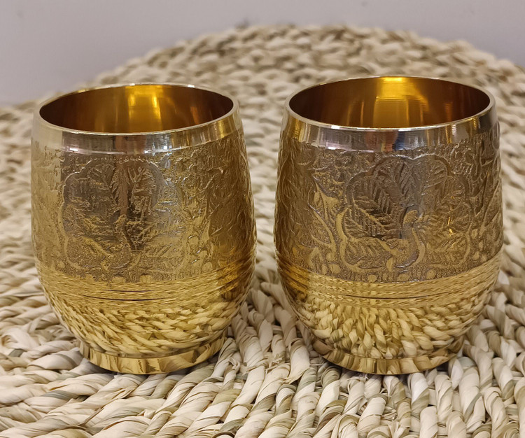 لیوان تپل طرح طاووس خط دار برنجی