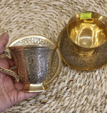 این فنجان نعلبکی شیپوری پایهدار با دسته ساده، ترکیبی از طراحی کلاسیک و متریال فاخر برنجی است. فرم شیپوری آن جلوهای خاص و هنری به محصول داده و پایهدار بودنش، حس لوکس بودن را تقویت میکند. دسته ساده و مینیمال، زیبایی را با سادگی ترکیب کرده و نعلبکی هماهنگ، این ست را برای سرو چای، قهوه یا دمنوش در مهمانیهای خاص و دکوراسیون سنتی مناسب کرده است. ساختهشده از برنج با کیفیت بالا، با رنگ طلایی گرم و سطح صیقلی، انتخابی عالی برای هدیه دادن یا استفاده در چیدمانهای کلاسیک و هنری.