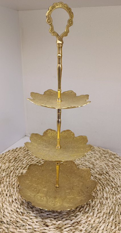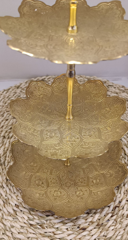 شیرینیخوری سهطبقه برنجی با طراحی گل و لبه گلدار، جلوهای باشکوه و هنری به میز پذیرایی شما میبخشد. هر طبقه با لبههایی به شکل گلبرگ طراحی شده که زیبایی و لطافت طبیعت را به نمایش میگذارد. ساختهشده از برنج با کیفیت بالا، این محصول علاوه بر کاربردی بودن، نقش تزئینی در دکوراسیون منزل نیز دارد. مناسب برای سرو شیرینی، میوه، یا شکلات در مهمانیها و مراسم خاص. رنگ طلایی گرم آن با نور محیط بازی میکند و جلوهای چشمنواز ایجاد میکند. انتخابی عالی برای هدیه دادن یا استفاده در چیدمانهای سنتی و لوکس.