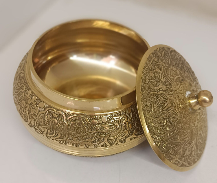 شکلاتخوری بلچ سایز کوچک با طرح طاووس، یک ظرف پذیرایی برنجی با طراحی هنری و سنتی است. نقش طاووس، نماد زیبایی و شکوه، با ظرافت خاصی روی بدنه حک شده و فرم بلچ آن، با انحنای لطیف و حجم جمعوجور، جلوهای کلاسیک و دلنشین دارد. این ظرف از برنج با کیفیت بالا ساخته شده و مناسب سرو شکلات، نقل یا استفاده تزئینی در دکوراسیون منزل است. رنگ طلایی گرم آن با نور محیط بازی میکند و جلوهای چشمنواز ایجاد میکند. انتخابی عالی برای هدیه دادن یا استفاده در چیدمانهای سنتی و لوکس.