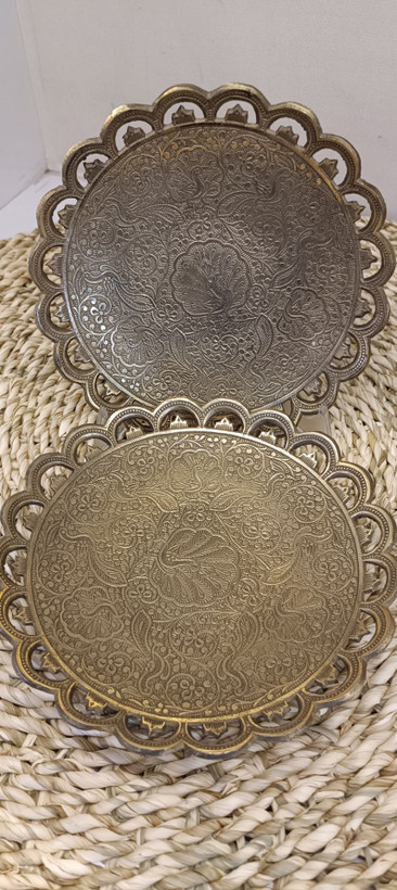 پیش دست طرح طاووس لب مشبک پایه دار برنجی