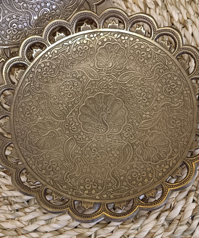 پیشدست برنجی پایهدار با طراحی طاووس و لبه مشبک، جلوهای باشکوه و سلطنتی به میز پذیرایی شما میبخشد. نقش طاووس، نماد زیبایی و شکوه، با ظرافت خاصی روی سطح سینی حک شده و لبه مشبک آن، حس هنر دست و اصالت ایرانی را منتقل میکند. پایهدار بودن این محصول، آن را برای سرو شیرینی، میوه یا استفاده تزئینی در دکوراسیون منزل مناسب کرده است. ساختهشده از برنج با کیفیت بالا، با رنگ طلایی گرم و سطح صیقلی، انتخابی عالی برای هدیه دادن یا استفاده در چیدمان سنتی و لوکس.