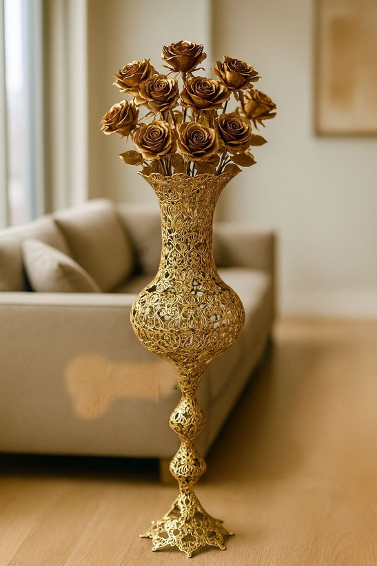 این گلدان توری تپل بلند از جنس برنجی با طراحی خاص و منحصربهفرد، انتخابی عالی برای دکوراسیون داخلی است. ظاهر توری آن باعث میشود نور و سایه به زیبایی در فضا بازی کند. ارتفاع بلند و فرم تپل آن، جلوهای مدرن و در عین حال کلاسیک به محیط میبخشد. این گلدان بدون گل عرضه میشود و میتوان آن را بهصورت دکوری یا با گلهای خشک و مصنوعی استفاده کرد.