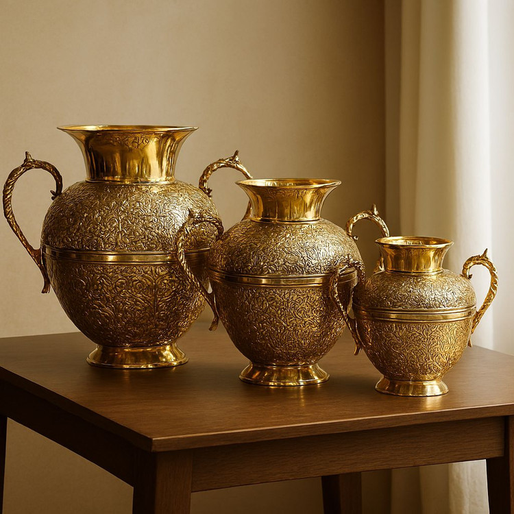 گلدان برنجی طرح طاوس برنجی مدل دو دسته در سه سایز مختلف