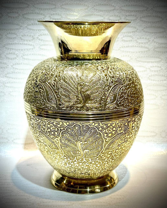 گلدان برنجی طرح طاوس برنجی مدل بدون دسته در سه سایز مختلف