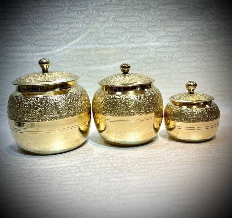 بانکه خمره ای (جا ادویه) خمره ای برنجی هندی در سه سایز مختلف