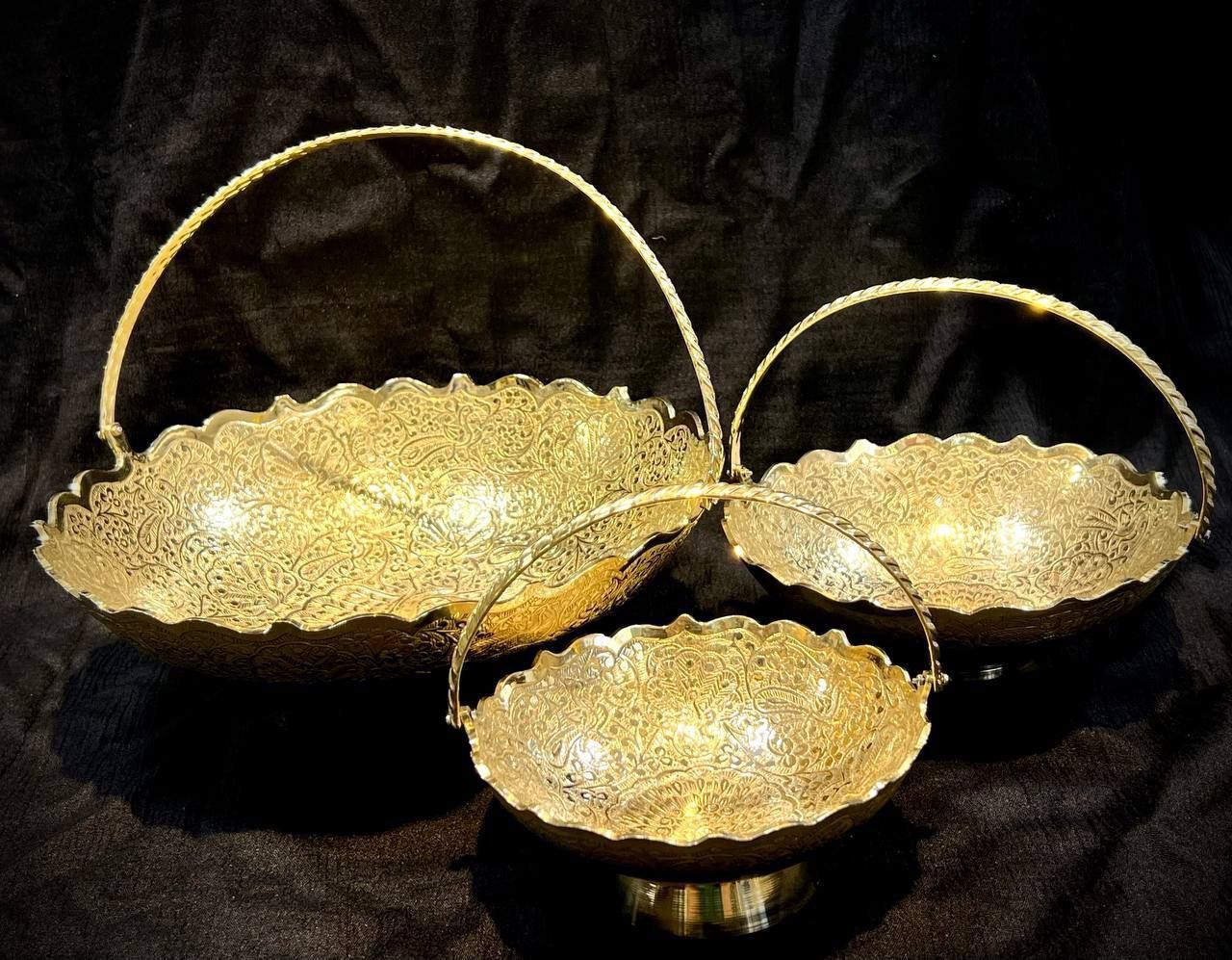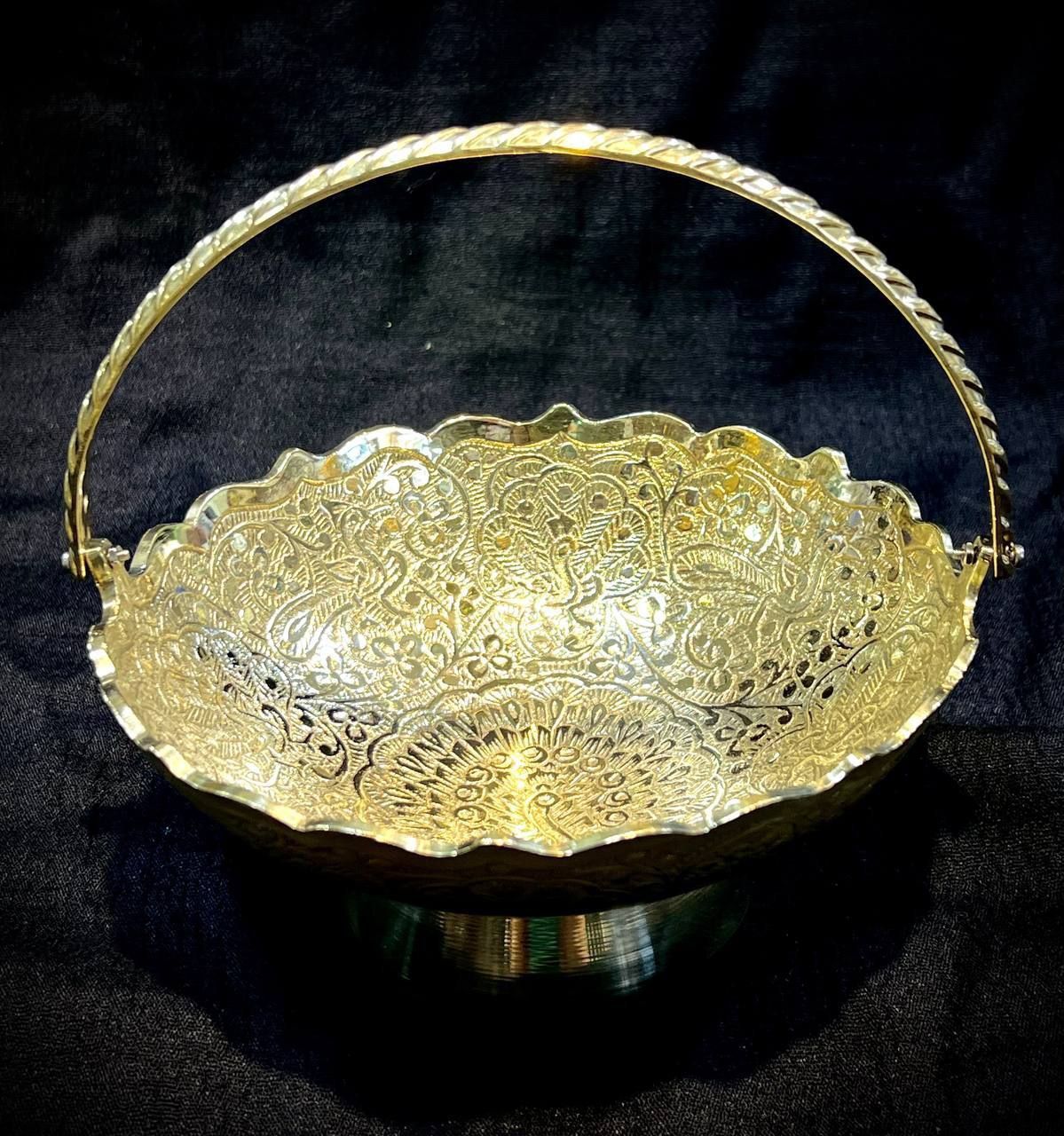 کاسه سبدی دسته دار طرح طاووس برنجی در چهار سایز مختلف