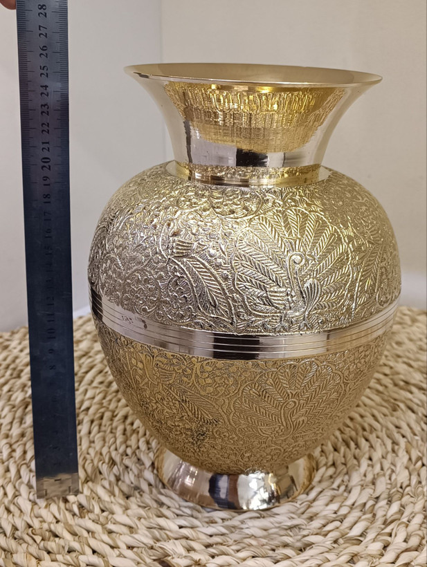 گلدان جار طرح طاووس ۱۰ اینچ یک اثر هنری و صنایع دستی زیباست که از برنج ساخته شده و با نقش طاووس تزئین شده است. طراحی جار (Jar) آن علاوه بر زیبایی، قابلیت استفاده بهعنوان گلدان یا ظرف دکوری را فراهم میکند. جنس برنجی محصول مقاومت بالا و درخشندگی خاصی دارد و طرح طاووس روی بدنه جلوهای سنتی و لوکس به فضای خانه یا محل کار شما میبخشد. ارتفاع ۱۰ اینچی آن انتخابی مناسب برای میز پذیرایی، ویترین یا دکوراسیون داخلی است.