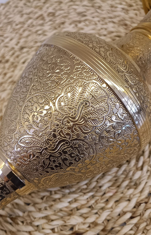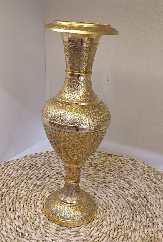 گلدان کشمیر طرح طاووس ۱۶ اینچ یک اثر هنری و صنایع دستی زیباست که از برنج ساخته شده و با نقش طاووس تزئین شده است. این گلدان با طراحی سنتی و قلمزنی ظریف، جلوهای لوکس و دکوری به فضای خانه یا محل کار شما میبخشد. ارتفاع ۱۶ اینچی آن باعث میشود بهعنوان یک دکوری شاخص در سالن پذیرایی یا اتاق نشیمن بدرخشد. جنس برنجی محصول علاوه بر مقاومت بالا، ماندگاری طولانی و درخشندگی خاصی دارد.