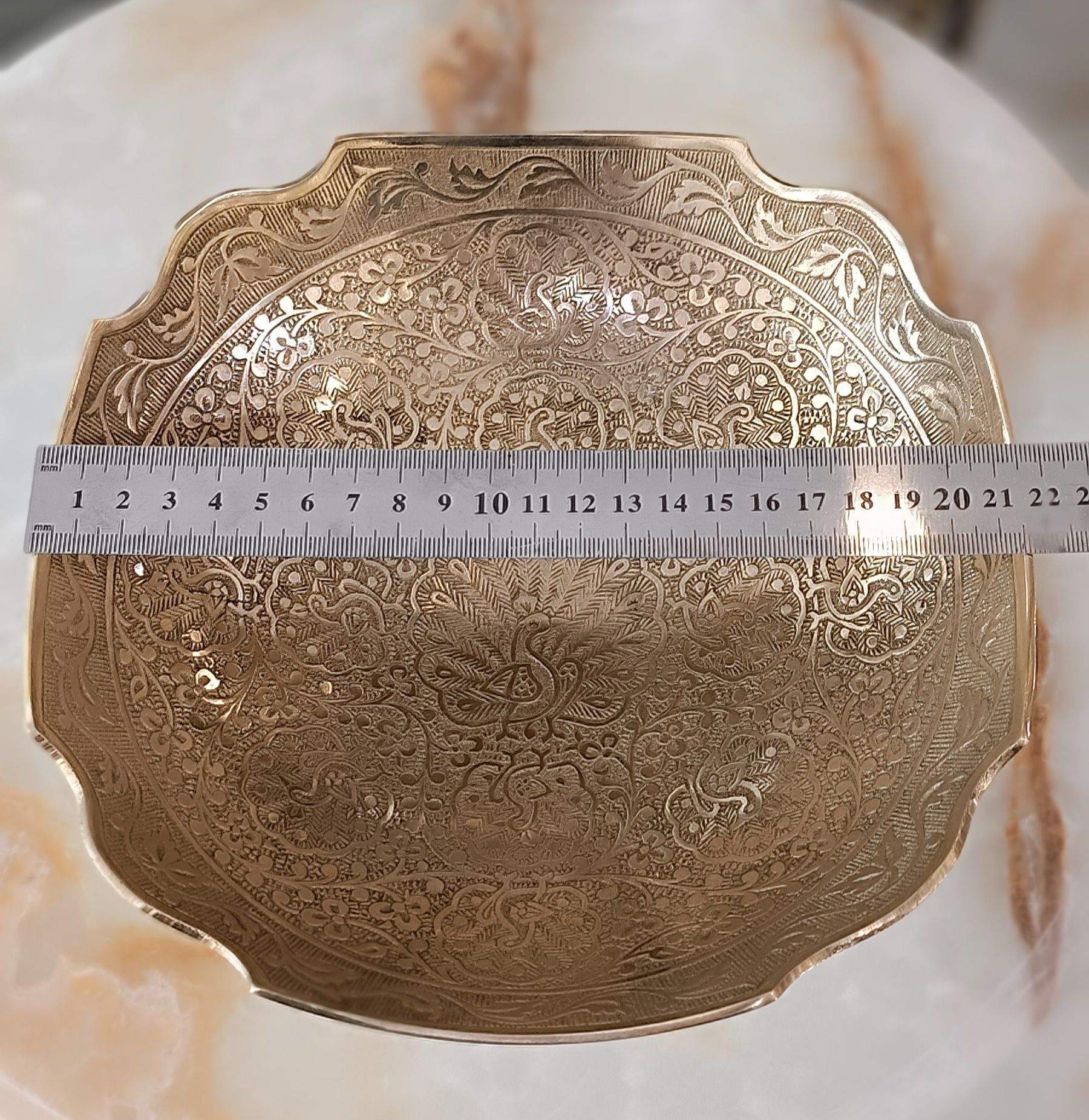 آجیل خوری مربعی طرح طاووس لبه طرح دار 10 اینچ