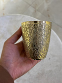 این لیوان زیبا با بدنهای از برنج خالص و طراحی گلدار همراه با خطوط راهراه عمودی، جلوهای چشمنواز و سنتی دارد. هنر دست استادکاران هندی در نقش برجستهی گلها، احساس اصالت، طبیعت و گرمای فرهنگی را منتقل میکند. درخشش طلایی رنگ برنج در کنار ظرافت طرحها، این لیوان را به انتخابی خاص برای نوشیدنیهای گرم یا سرد و حتی دکور سنتی و لوکس تبدیل کرده است. ایدهآل برای کلکسیونداران، دوستداران سبک شرقی و همچنین هدیهای ماندگار.