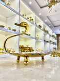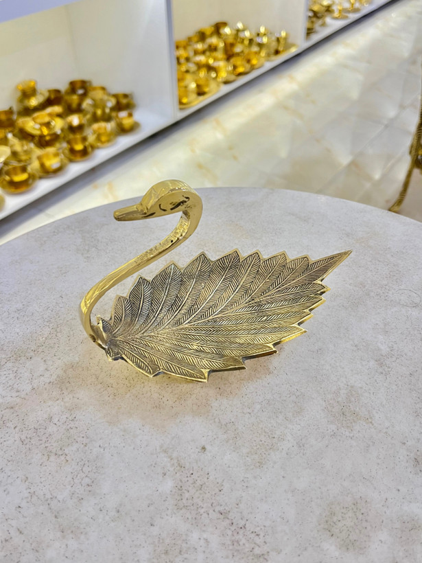 این آجیلخوری زیبا از برنج خالص ساخته شده و ترکیبی منحصربهفرد از طراحی قو و برگ را در خود جای داده است. بدنهی آن با خطوط منحنی و الهامگرفته از بالهای قو و فرمهای برگ، جلوهای طبیعی و در عین حال فاخر دارد. این ظرف نهتنها برای پذیرایی از مهمانان در مناسبتهای خاص مناسب است، بلکه بهعنوان یک اِلِمان دکوراتیو هم زیبایی خاصی به محیط میبخشد. ساختهشده با دستان هنرمندان هندی، این محصول از آن دسته آیتمهاییست که نگاهها را به خود خیره میکند و حس تجمل و اصالت را منتقل میسازد.