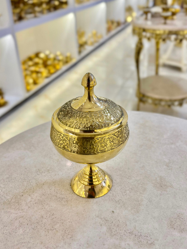 این قندان باشکوه با پایهی رینگی و طراحی طاووس، ساختهشده از برنج خالص و توسط هنرمندان زبردست هندی تولید شده است. طرح برجستهی طاووس، جلوهای هنری و فاخر به محصول بخشیده و پایهی حلقهای آن باعث شده قندان به شکلی استوار و چشمنواز روی میز بدرخشد. این ظرف نهتنها برای سرو قند یا نقل مناسب است، بلکه بهعنوان یک قطعهی دکوری نیز جلوهای اصیل و شرقی به دکوراسیون شما میبخشد. ایدهآل برای پذیرایی رسمی، دکور منازل سنتی یا هدیهای خاص.