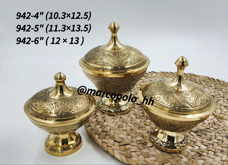 قندان پایه دار برنجی هندی در سه سایز مختلف