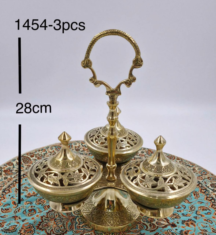 با این ست سهتایی قندان برنجی هندی با طرح فرشته، ظرافت و زیبایی هنر سنتی هند را به میز پذیرایی خود بیاورید. هر قندان با دقت و ظرافت توسط هنرمندان هندی ساخته شده و دارای طرح برجستهی فرشته است که جلوهای لوکس و خاص به آن بخشیده. این مجموعه برای پذیرایی در میهمانیها، دکور منزل یا هدیهای ارزشمند بسیار مناسب است.