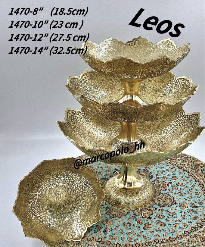 یک ست پذیرایی برنجی با طرح لئوس، شامل شکلاتخوری، آجیلخوری و میوهخوری در دو سایز، مناسب برای تزیین و پذیرایی در مهمانیها و مجالس. طراحی زیبا و مقاوم با جنس برنج درجه یک.