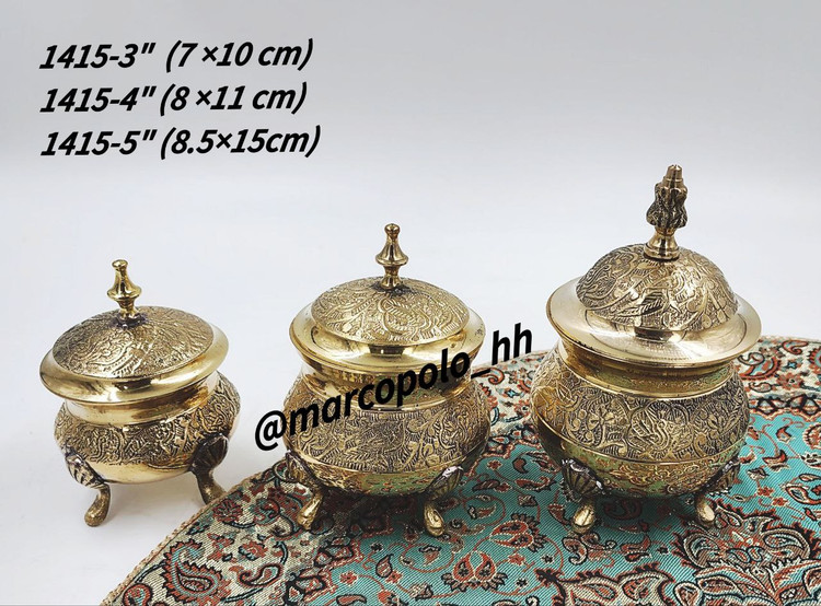 قندان 4پایه طرح طاووس لب ساده در سه سایز مختلف برنجی