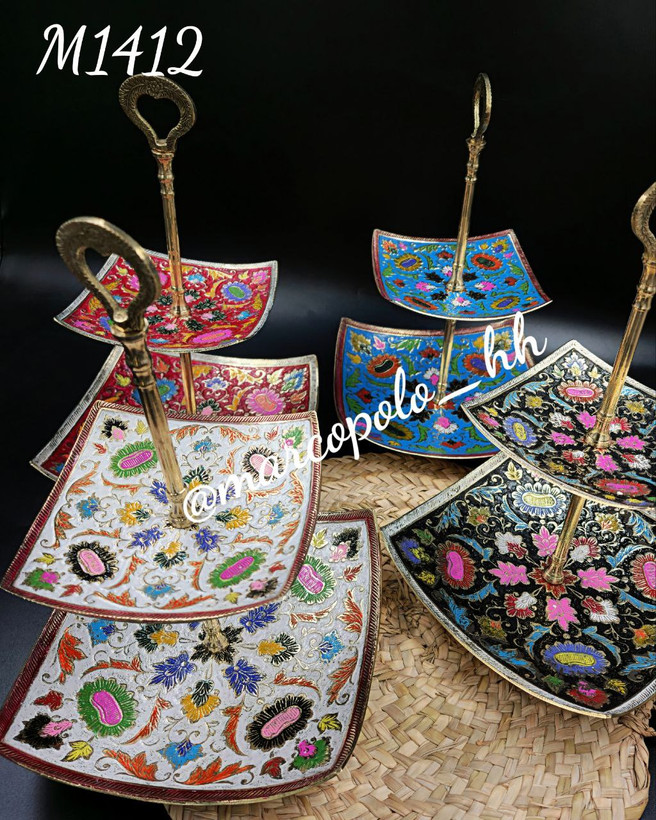شیرینیخوری دو طبقه با بدنهای از فلز برنجی و تزئین میناکاری سنتی هندی، ترکیبی چشمگیر از هنر و کاربرد است. این محصول با چهار رنگ زنده عرضه میشود و انتخابی ایدهآل برای میزهای پذیرایی، تزیین مجالس و هدیهای خاص محسوب میشود. دوام بالا و طراحی اصیل، آن را به یکی از قطعات محبوب دکوراسیون تبدیل کرده است.