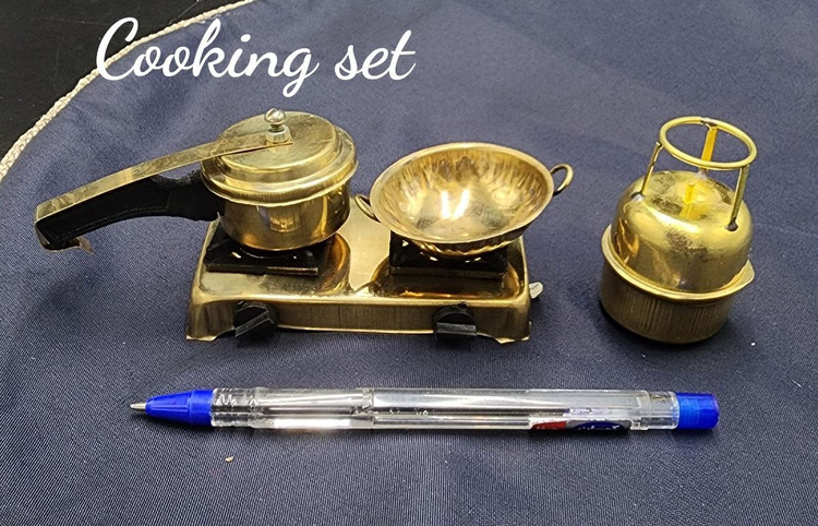 سرویس اجاق گاز برنجی با طراحی هنری و لوکس، مناسب برای تزئین فضای آشپزخانه و دکوراسیون داخلی با ظاهر مدرن و جذاب.