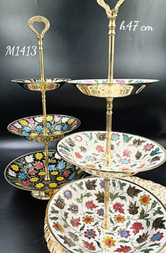 شیرینی خوری سه طبقه میناکاری برنجی هندی در دو رنگ